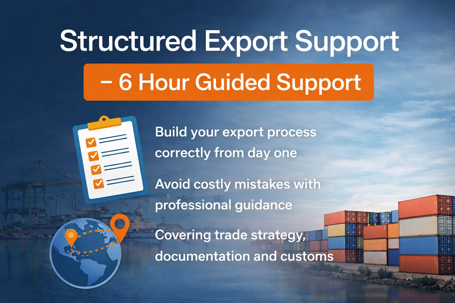 Structured Export Support – 6 Hours is designed for businesses that want to build or fix their export process with expert guidance across every stage of international trade.